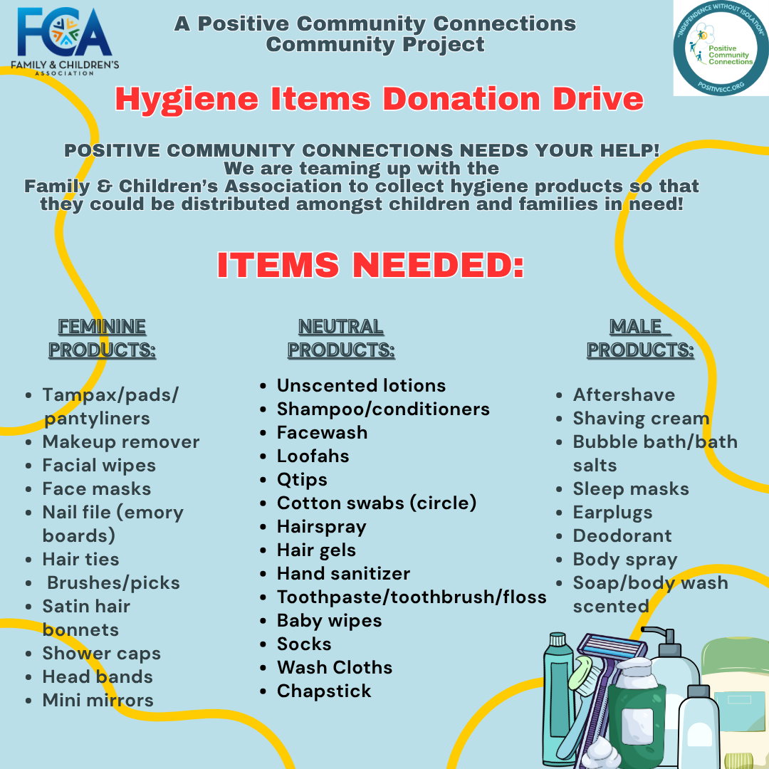 PCC'S coming together to support teens in foster care by collecting hygiene item donations for the Family & Children’s Association—small essentials that can make a big difference!