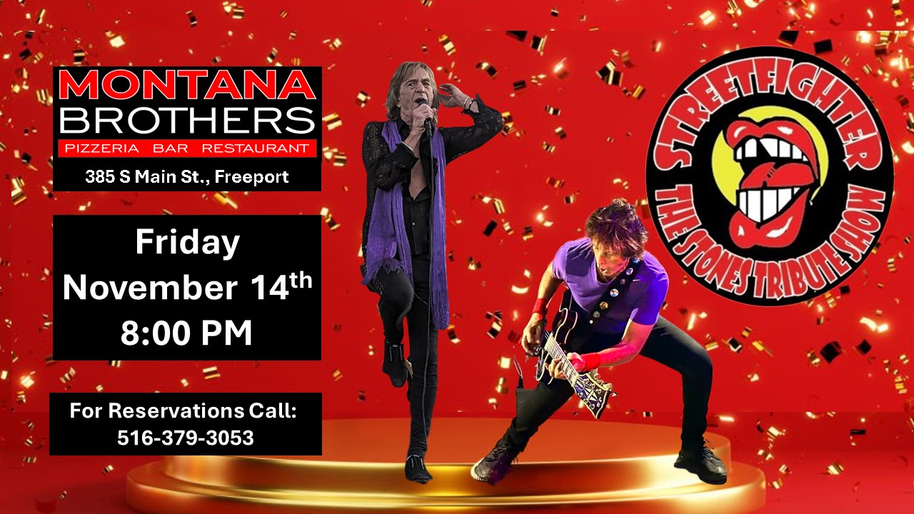 Streetfighter is back at Montana's with the greatest hits from the Rolling Stones and a few obscure ones too! This show will be indoors. For table reservations call: 516-379-3053.