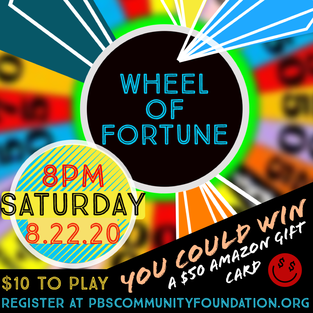At 7:30pm on Saturday August 22nd you will receive an email from us with the wheel of fortune zoom access code. The zoom portal will officially open at 7:45pm. Once everyone has arrived our hosts will explain the game and start the fun!!!